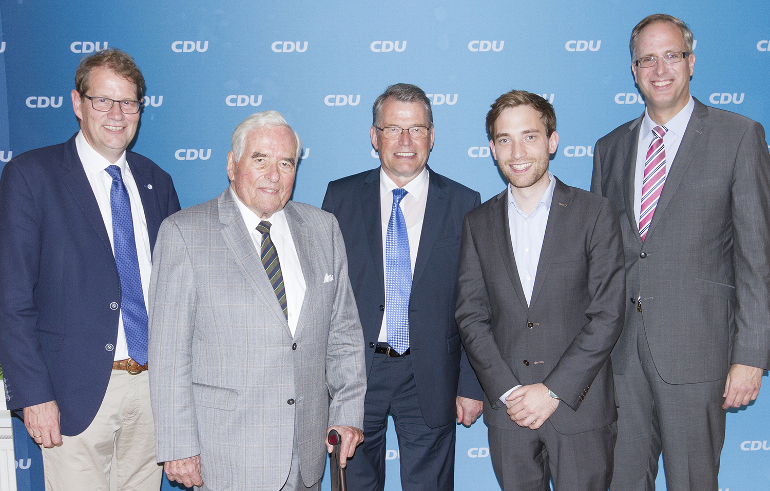 15 CDU Mitglieder wurden für ihre Parteitreue für 25, 40, 50 und 70 Jahre geehrt. Paul-Joachim Tiefenbacher erhielt besonderen Applaus für seine 70-jährige Treue. ,,Gründungsmitglied war ich aber nicht", ließ er wissen.