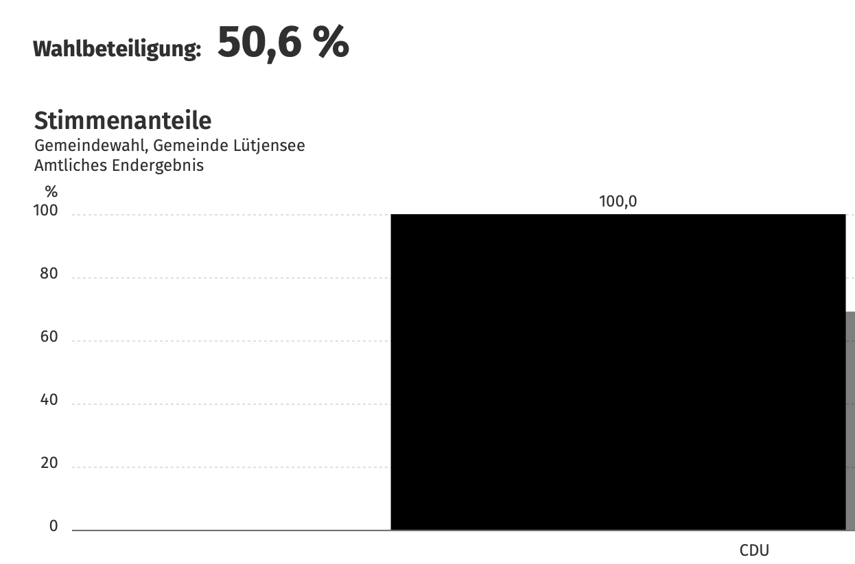 Unter diesem Link finden Sie die detailierten Ergebnisse für Lütjensee: hier klicken (externer Link zu www.wahlen-sh.de)