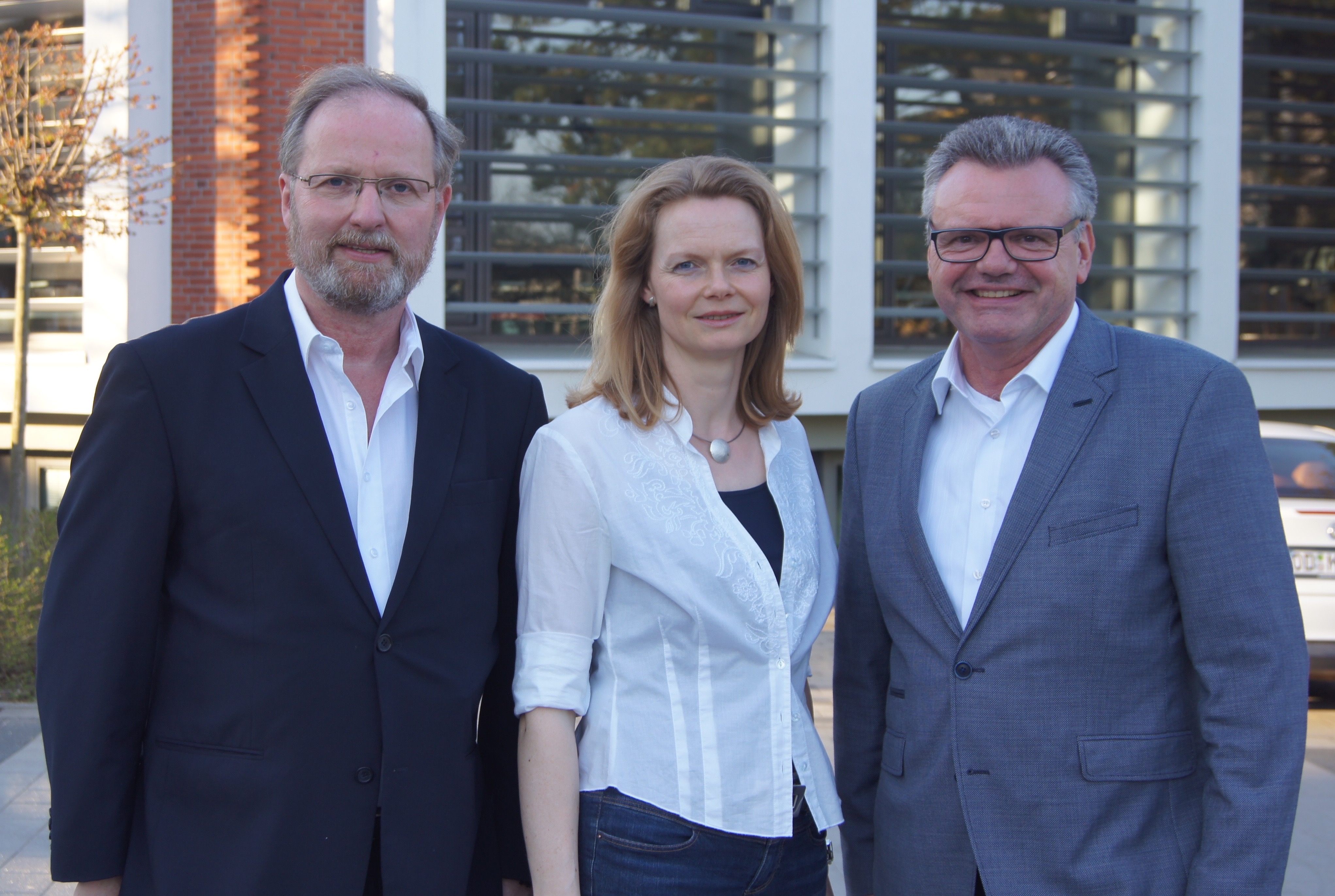 Foto: Die CDU-Spitzenkandidaten vor dem Kreistagssitzungssaal in Bad Oldesloe: Kirstin Krochmann, Joachim Wagner und Hans-Werner Harmuth