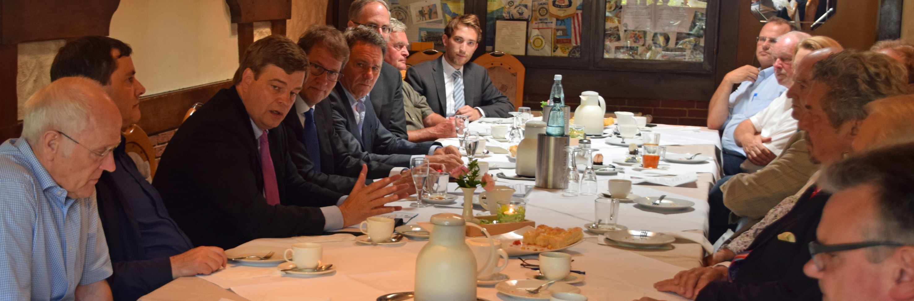 Bad Oldesloe– Am vergangenen Mittwoch folgte der Parlamentarische Staatssekretär des Bundesministeriums für Verkehr und digitale Infrastruktur Enak Ferlemann der Einladung des CDU-Bundestagsabgeordneten Gero Storjohann zu einem CDU-Funktionsträgergespräch in das Restaurant „Zum Kamin“ in Bad Oldesloe.