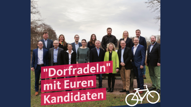 Wir möchten gemeinsam mit Euch Lütjensee beradeln und uns dabei aktuelle, vergangene und zukünftige Projekte und Standorte anschauen. Dabei könnt Ihr uns, die Kandidaten für die Gemeindevertretung, besser kennenlernen.