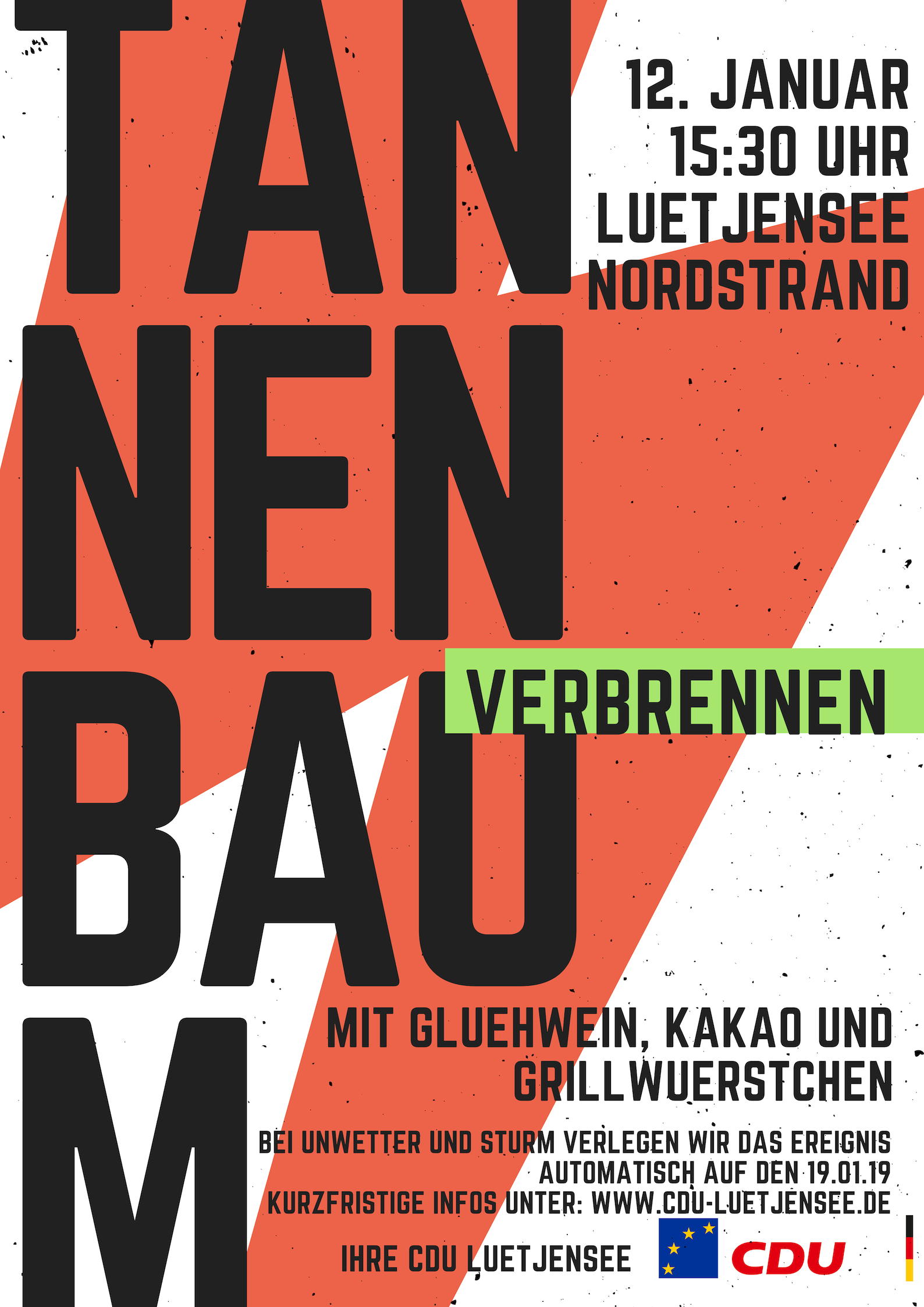 Die CDU Lütjensee lädt Sie am 12.01.2019 herzlich zum traditionellen Tannenbaumverbrennen an den Nordstrand des Lütjensees ein.